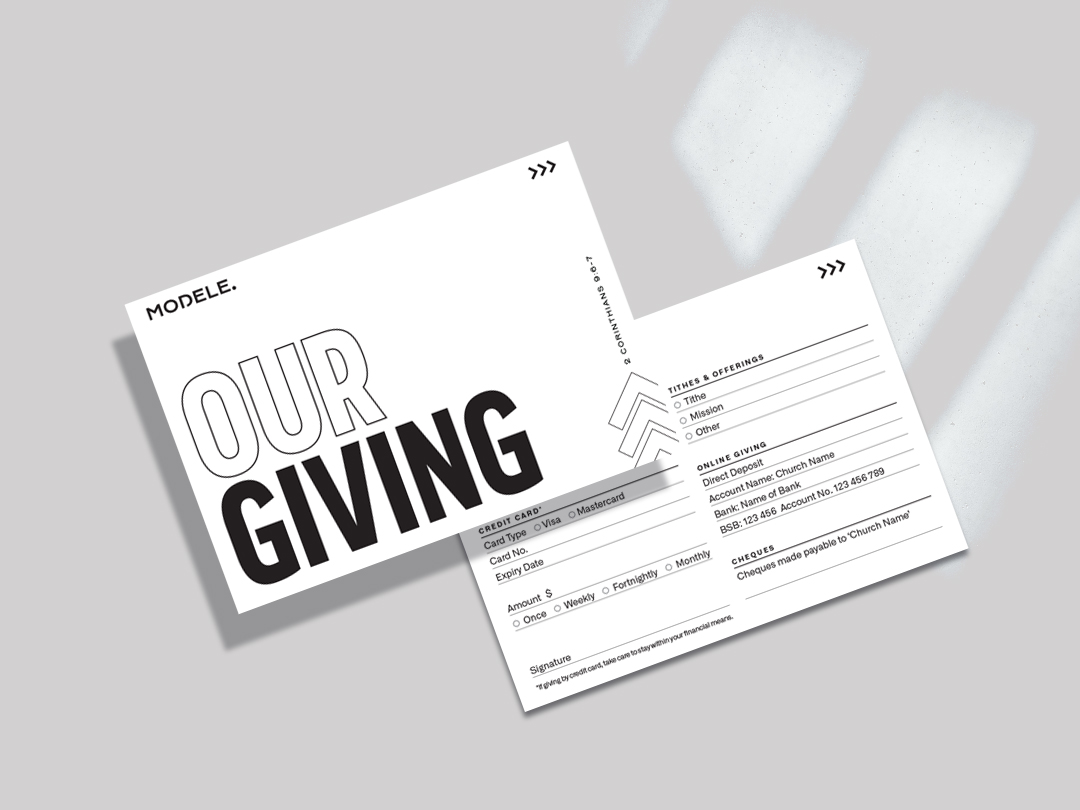 A black and white design. This generic card can be edited to fit your church branding or used as is. It is clear and easily visible. The use of outlined arrows point to a scripture.