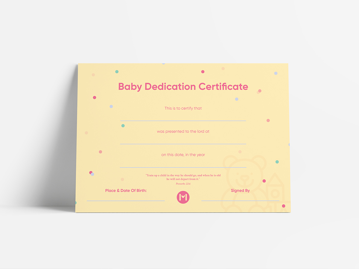 Rainbow confetti on a soft yellow background. An illustration of a teddy bear and building blocks set with a low opacity completes this beautiful design.