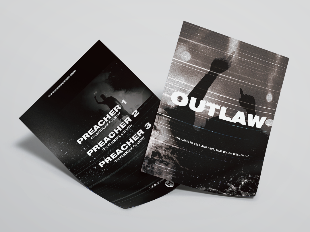 A grunge high contrast design. Black and white imagery with the use of a deep red creates a serious tone within the design. Gathering the troops and uniting the church.