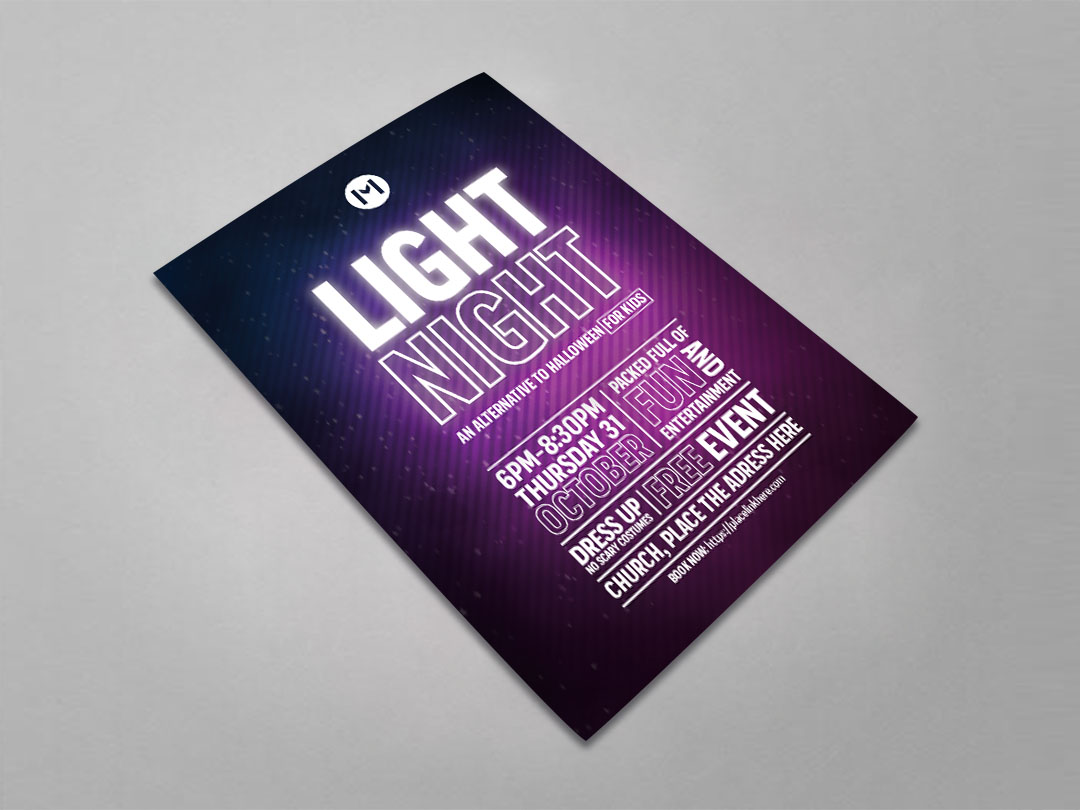 A bright and friendly design for a fun alternative to Halloween. The design consists of bright colour contrasts and bold text. The theme is perfect for a friendly night event for kids or young adults.