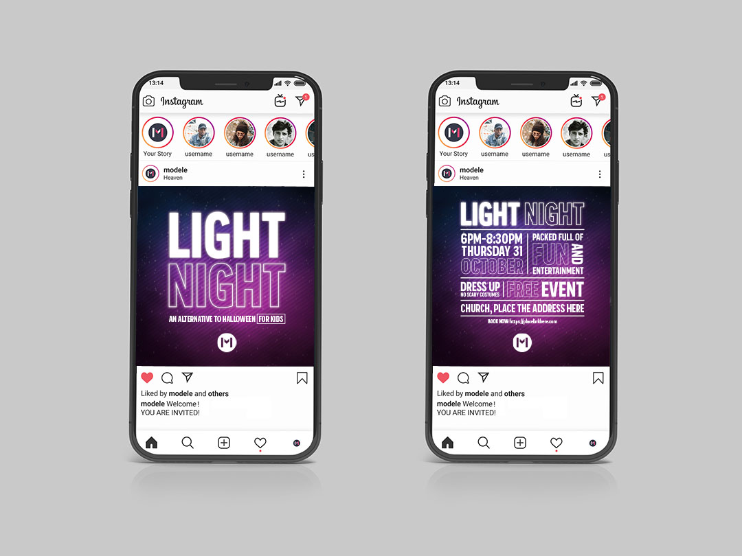 A bright and friendly design for a fun alternative to Halloween. The design consists of bright colour contrasts and bold text.