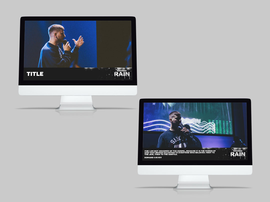 A series where the month of November is dedicated to teaching and praying for the Holy Spirit to ‘Rain’ down on the church and community. The design shows rain drops representing the Holy Spirit pouring down on us. A high contrast black and white image coupled with photography of hands raised and people worshiping.