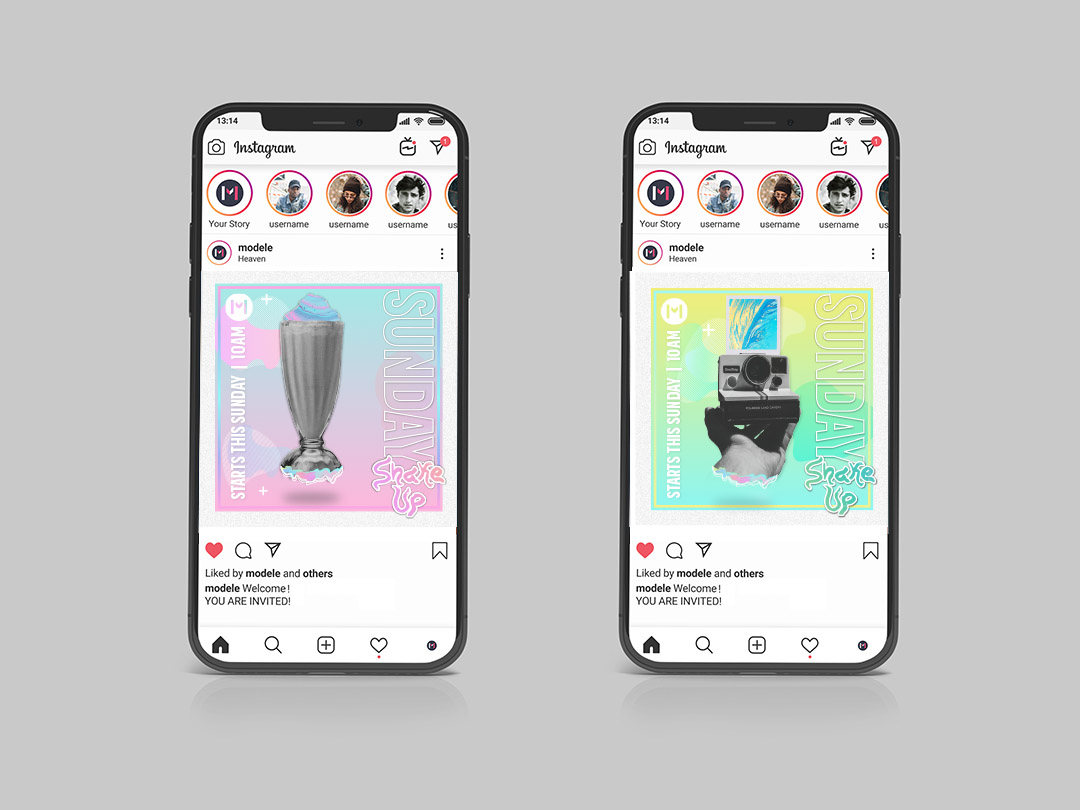 A fun and playful series where the services are flipped around and shaken up to go against the norm. Sometimes a little change can stir something new. The combination of the bright colours with the black and white images have a fun collage retro feel. Mixed with shapes and patterns, this series has a playful 1950’s diner style.