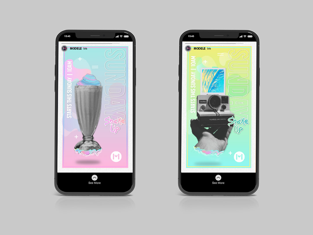 A fun and playful series where the services are flipped around and shaken up to go against the norm. Sometimes a little change can stir something new. The combination of the bright colours with the black and white images have a fun collage retro feel. Mixed with shapes and patterns, this series has a playful 1950’s diner style.