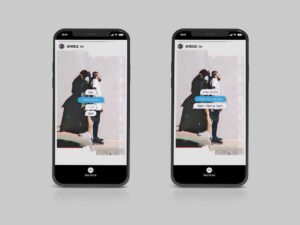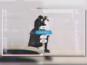 The Expectation Gap is a relational series discussing the difference in perception of one person and the actual responsibilities of the other. The distorted image of the couple in the background suggest a disconnection or conflict between the two. The use of social media speech bubbles speaks to the now generations.