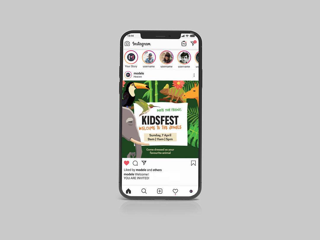 A wild event for your Children’s Ministry. Elephants, Lions and all things jungle. A colourful illustration to inspire fun and excitement. A white box is used to hold the text while the animals frame the border.