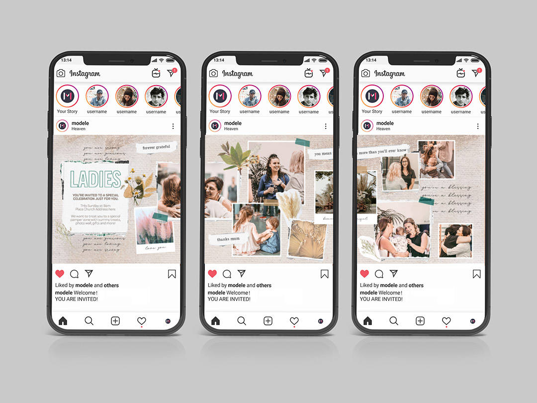 A beautiful design celebrating women. Torn paper, polaroids and dried flowers are scrapbooked together in a uniquely stunning design. Photographs of women from within the church can be changed for images from your own church. Each element is free floating and can be moved around.