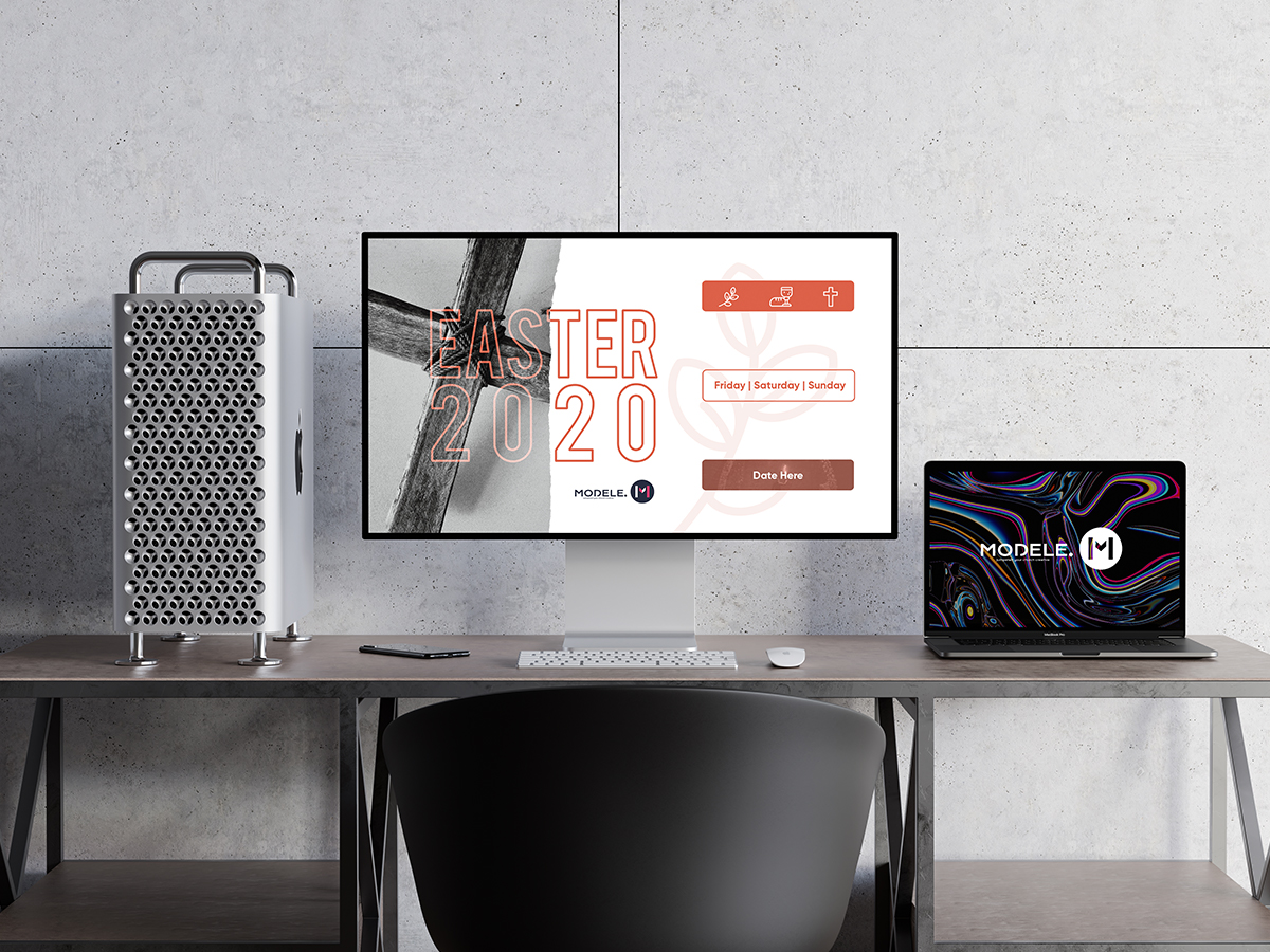 A beautiful design depicting the most significant day of the year for the church. A black and white image of a wooden cross is depicted on one side with an empty tomb on the other. The clever use of colour and layout creates a sophisticated and modern design.