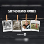 Polaroids strung up along a piece of string showing a range of different generations. From the old to young, every generation matters. A black wooden slated background gives a natural…