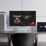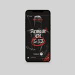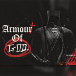 A grunge mixture of old and new. A black and white image of a knight in chain mail overlayed with a caligraphy font. Red chalk highlights the word God that…