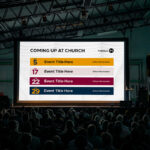 A modern, bold layout communicating the dates, times and details of upcoming events. The use of large text placed in different coloured blocks allows plenty of space for any event.…
