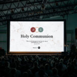 A traditional feel for a communion slide. A marble background is used with a serif font. Icons within three circles create a modern looking logo. Contents: 1 x Title Slide…